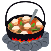 お昼ごはんに、みんなで持ちよった具で作った、具だくさん芋煮をみんなでおなかいっぱいあじわいましょう!